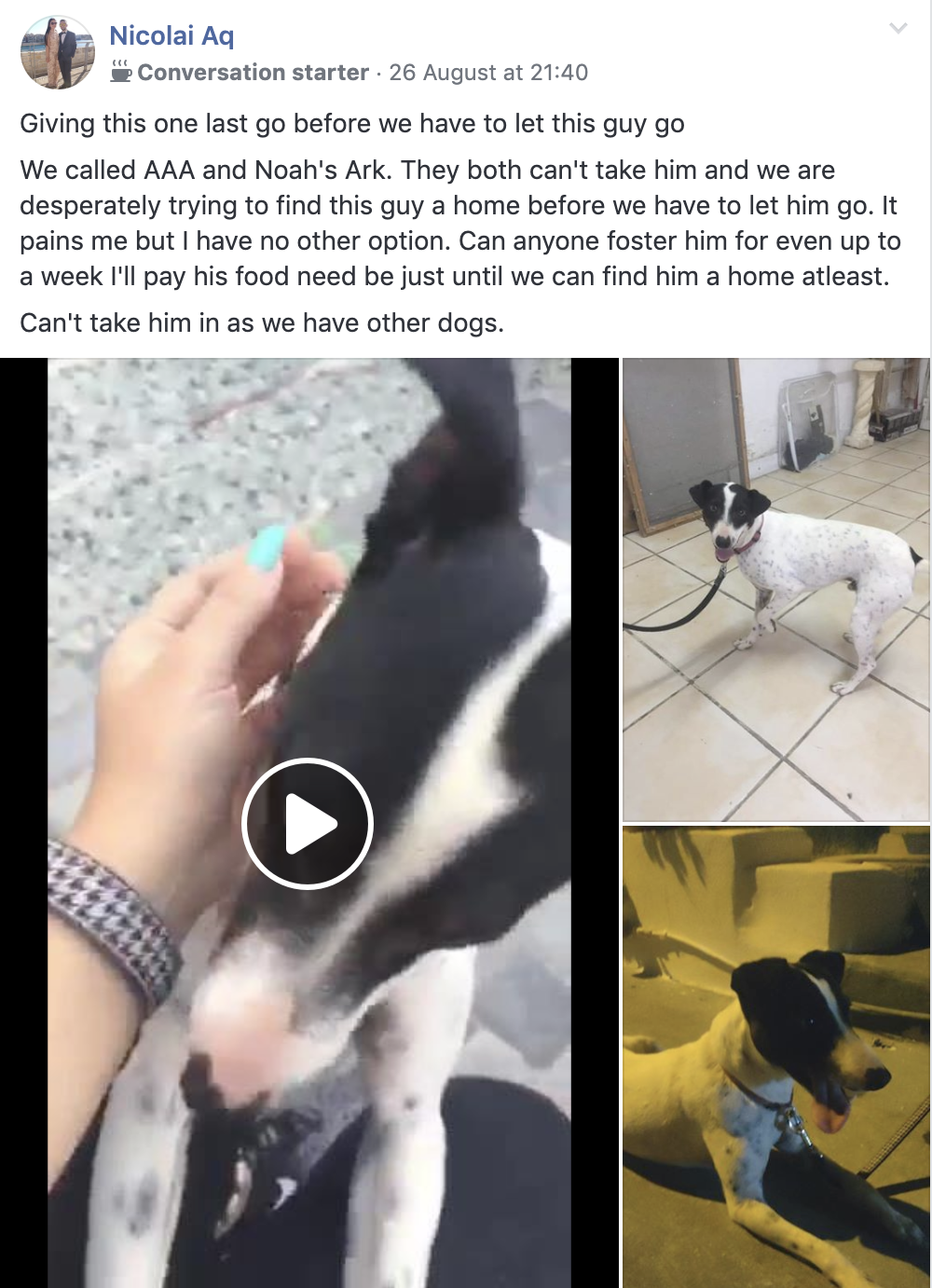 The last plea posted on Facebook on Monday evening seeking a shelter for Freddie